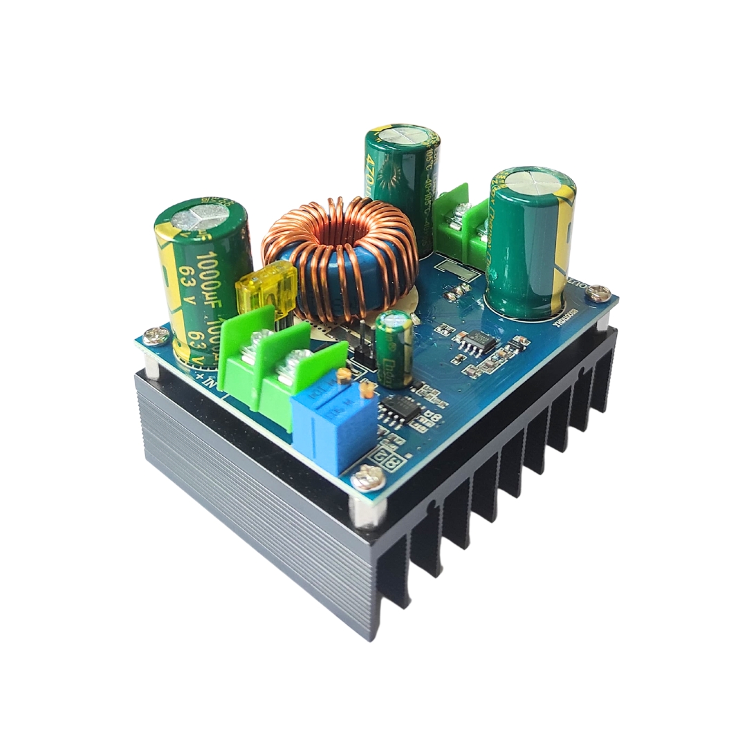 DC-DC 600W 10-60V to 12-80V Step-up Boost Converter Module is a robust, DC to DC, Step-up Boost Converter which includes a large heat sink on the bottom and use a a boost converter for large DC Voltage.